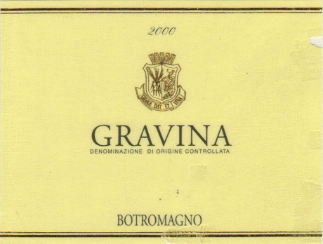 - GRAVINA D.O.C. (Denominazione di Origine Controllata) made from GRECO (60%) and MALVASIA (40%) grapes is a straw-colored wine with beautiful green reflections and a fragrant bouquet of flowers and fresh fruit. Dry and delicate, Gravina is the perfect accompaniment to a wide range of fish dishes. Excellent with oysters.