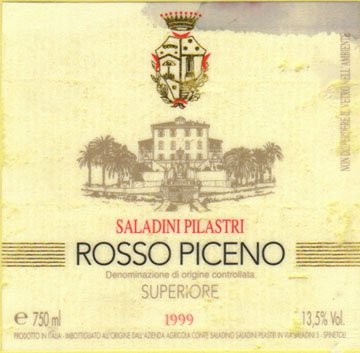 - (赤) イタリア: SALADINI PILASTRI ROSSO PICENO SUPERIORE D.O.C. (1999)