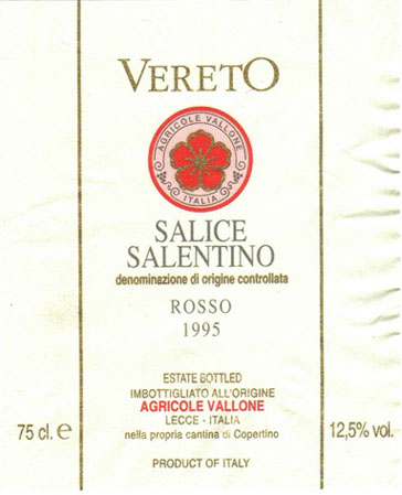 - (赤) イタリア: VERETO SALICE SALENTINO ROSSO DOC (1995)