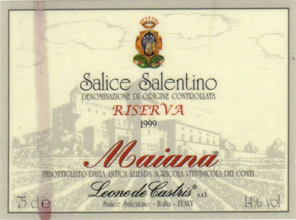 - 『サリーチェ サレンティーノ ロッソ リゼルヴァ』は、生産者が葡萄栽培から醸造・瓶詰めまで丹精込めて行う自家葡萄園元詰めのイタリア銘醸ワインで、生産量も限られた手作りの逸品です。熟した果実の甘い香りがあり、完熟した果実味は正に南の地方のワインであることを感じさせてくれます。柔らかく適度なタンニンを含んだとても古典的なスタイルです。ブーリア州の産で、生産者はレオーネ デ カストリス、使われている葡萄の品種はネグロアマーロ種とマルヴァジア ネーラ種、ミディアムボディの赤ワインです。