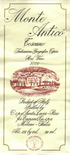 - 『モンテ・アンティコ』は、トスカーナ地方の代表的な葡萄品種であるサンジョヴェーゼ種を使用して造られたワインです。イタリアワインのスペシャリストであるニール・エンプソン氏と有名な醸造家フランコ・ペルナベイ氏によって、トスカーナ地方の最良の丘にある畑から選りすぐられた葡萄は木樽での熟成後、完全に調和のとれたワインになりました。味わいはフルボディで、新鮮で果実味あふれる香りです。チーズ、パスタ、肉料理に良く合います。16℃−18℃が適温です。
