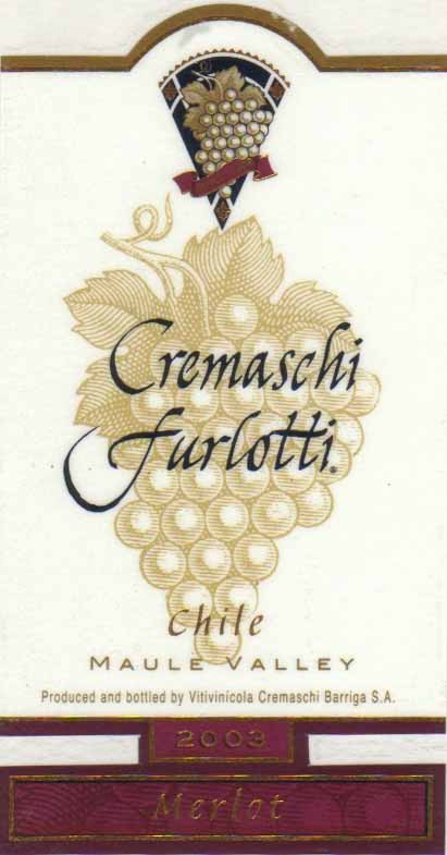 - (赤) チリ: CREMASCHI FURLOTTI MERLOT MAULE VALLEY (2003)