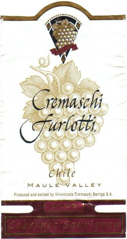 - (赤) チリ: CREMASCHI FURLOTTI CABERNET SAUVIGNON MAULE VALLEY (2003)