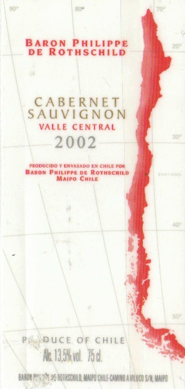 - (赤) チリ: BARON PHILIPPE DE ROTHSCHILD CABERNET SAUVIGNON VALLE CENTRAL (2002)