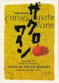 - 美容と健康に気遣う方に、今注目の『生命の果実』として古代文明から珍重されてきた『ざくろ』。カリフォルニア州の『Casa de FRUTA』社は、自社葡萄園で収穫した『ざくろ』を主原料として醸造した香り高いワインです。『ざくろ』の甘酸っぱさが心地よく、食中酒としても最適です。8℃位に冷やしてお飲み下さい。
