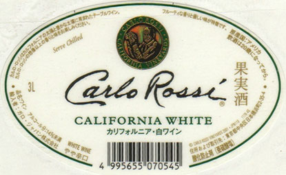 - (赤) カリフォルニア: CARLO ROSSI CALIFORNIA CABERNET SAUVIGNON