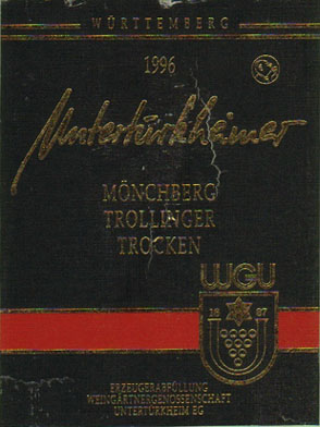 - (赤) ドイツ: UNTERTORKHEIMER MONCHBERG TROLLINGER TROCKEN QUALITATSWEIN (1996)