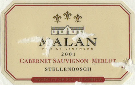 - (赤) 南アフリカ: MALAN CABERNET SAUVIGNON MERLOT (2001)