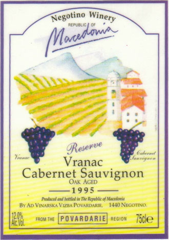 - (赤) マケドニア: VRANAC CABERNET SAUVIGNON RESERVE (1995)