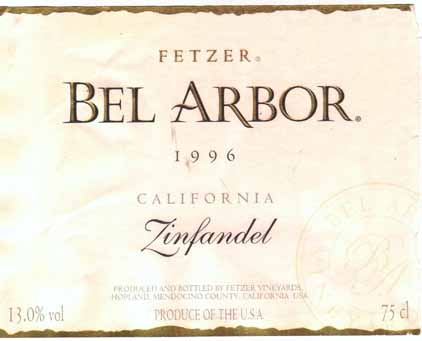 - (赤) カリフォルニア: FETZER BEL ARBOR ZINFANDEL (1996)