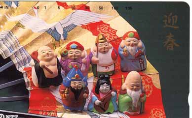 それでも、お手水で手を洗い口をすすいでやっと南門から拝殿前の広場に入ります。正面に銅板拭きの荘厳な拝殿が見えます。南門からはほんの100mにも満たない距離なのですが、ここからが時間がかかります。後から後から参拝客が来るのですが、最前列の人はお賽銭箱(でなく巨大な布)に突き当たってそこから出れなくなって滞留してしまうからです。端っこの人達はさっさと帰れますが、真ん中に進んだ人達は後ろに戻れず横に抜けるしかないのですが、それもままならずおしくらまんじゅうの状態になってしまいます。気を付けないと小銭が飛んできますので余計大変です。ほうほうの体で脱出しますと、広場の外には縁起ものの品々が売られています。やはりここではおみくじを引いて今年の運勢を占っておかなければいけません。つーーーと引いてみますと、なにやら和歌が詠まれています。昔はストレートに運勢が出ていたのですが。。。今年の運はどうなるか分からぬまま記念にテレカを買いました。あくまで実用的に。。。