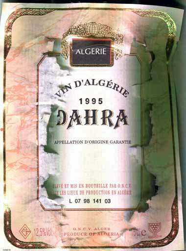 - (赤) アルジェリア: VIN D'ALGERIE DAHRA (1995)