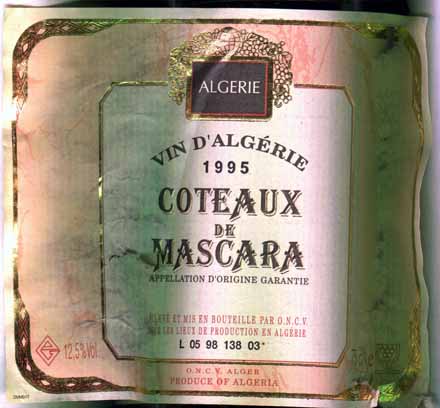 - (赤) アルジェリア: VIN D'ALGERIE COTEAUX DE MASCARA (1995)