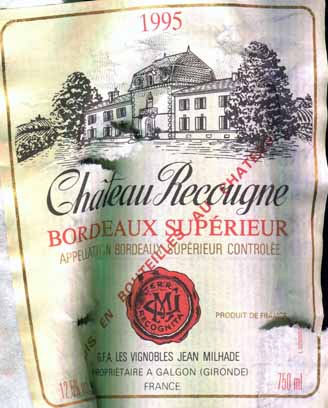 - (赤) フランス: CHATEAU RECOUGNE BORDEAUX SUPERIEUR (1995)