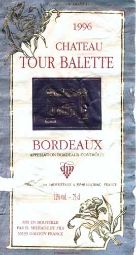 - (赤) フランス: CHATEAU TOUR BALETTE BORDEAUX (1996)