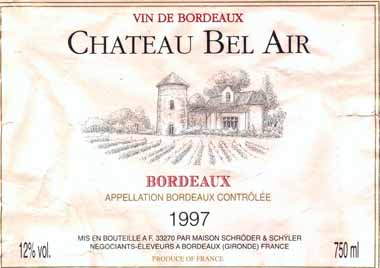 - (赤) フランス: CHATEAU BEL AIR VIN DE BORDEAUX (1997)