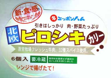 - これはお馴染みのものですが、電子レンジで僅か2分間暖めるだけで本格的な揚げたてのピロシキになります。中にはカレー味のあんが詰まっていて、じゅーっと熱い肉汁が口の中に飛び込むことがありますのでご用心!