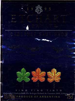 - (赤) アルゼンチン: ETCHART CAFAYATE CABERNET SAUVIGNON (1995)