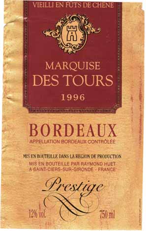 - (赤) フランス: MARQUISE DES TOURS PRESTIGE BORDEAUX (1996)