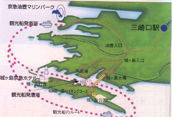 三崎港は、京浜急行の三崎口からバスに揺られて20分ー50分のところに位置しています。随分差があるとお思いでしょうが、昼間の観光ラッシュの時間帯と終バスの時間帯とではかくも違うのです。通常の観光ルートは、先ず三崎港を通り過ぎて城ケ島に渡り、磯巡りと北原白秋の句碑を見て、ちょうどお腹の空き出した頃合いを見計らって三崎港に戻り鮪料理を堪能するというのが定番のようです。私だけかな?ご参考までにですが、城ケ島から三崎港に戻る場合バスを利用するのが普通でしょうけど、道路の渋滞状況によっては牛が歩くよりバスの方が遅いという現象がおきます。私のお勧めは、磯巡りをしたあと海産物のお店などを覗きながら白秋の句碑までのんびり歩き、白秋記念館で暫し心の洗濯をした後で城ケ島大橋を徒歩で渡るのです。風の強い日はちょっと辛そうですが、お天気のいい日には遠く富士山まで見渡せる絶景のポイントになります。満員のバスの中で足の位置も定まらず苦闘するより余程楽です。城ケ島大橋を渡り切ったところに秘密の抜け道があり、三崎港の外れにでます。ここから10分くらい歩くと三崎港の中心部に辿り着くことができます。