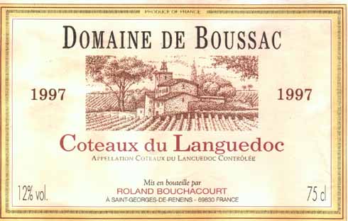 - (赤) フランス: DOMAINE DE BOUSSAC COTEAUX DU LANGUEDOC ROUGE (1997)