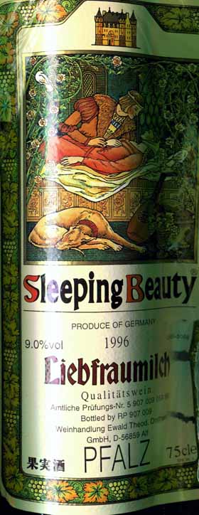 - 『スリーピング・ビューティ』は、『眠れる森の美女』のラベルが魅力的な口当たりの軽い甘口の白ワインです。