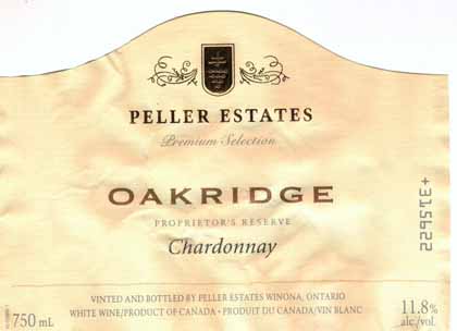 Peller Estates Oakridge Chardonnay is a wine with clean bright aromas of pear and apple, accompanied by subtle hints of sweet butter and light oak. It has a good balance and a crisp finish that fashions it as the perfect accompaniment for seafood and fish or other dishes that have a natural richness.