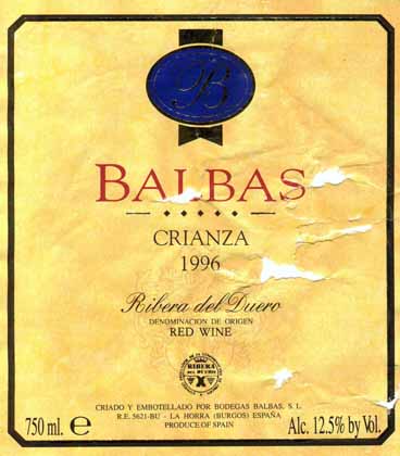 - (赤) スペイン: BALBAS CRIANZA (1996)