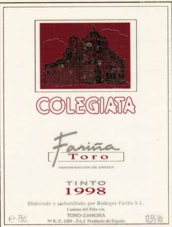 - (赤) スペイン: COLEGIATA FARINA TORO TINTO (1998)