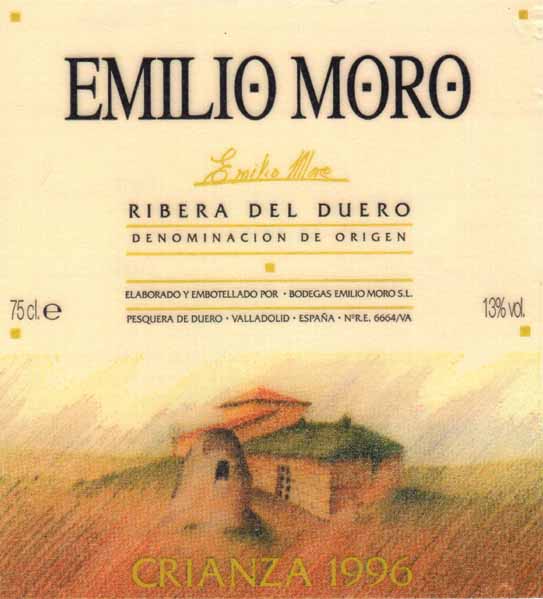 BODEGAS EMILIO MORO, S.L. DESDE 1988 SE HADEFINIDO POR ELABORARUN VINO CON CRIANZA PERSONAL. POSEE UN COLOR PUBI PROFUNDO CON AROMAS FRANCOS YESPECIADOS, SIENDO EN BOCA MUY EQUILIBRADO Y LARGO ENEL POSTGUSTO, TODO ELLO FRUTO DE UN CUIDADOSO PROCESODE ELABORACION Y UNA PERMANENCIA EN BARRICA DE ROBLE AMERICANO.