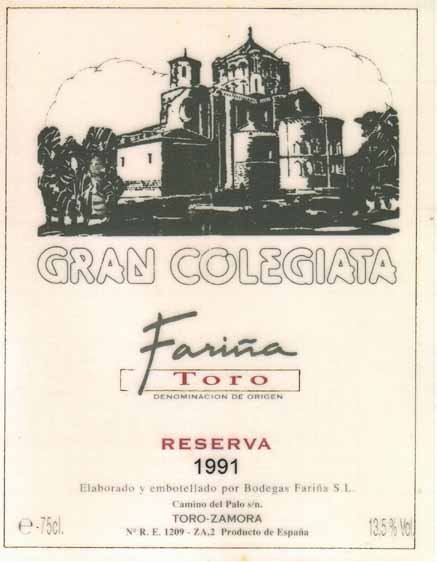 - (赤) スペイン: GRAN COLEGIATA FARINA RESERVA (1991)