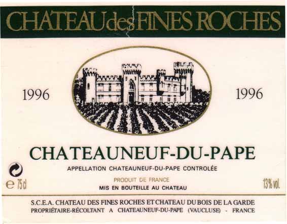 - (白) フランス: CHATEAU DES FINES ROCHES CHATEAUNEUF-DU-PAPE (1996)