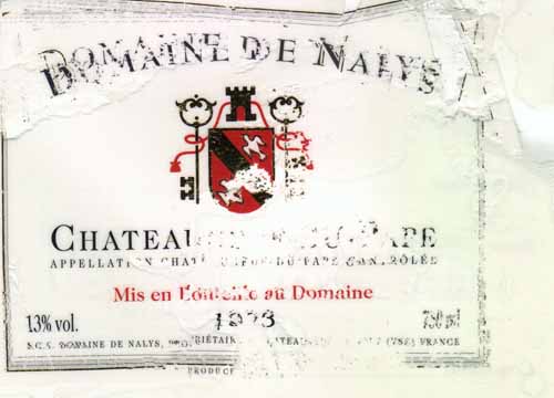- (白) フランス: DOMAINE DE NALYS CHATEAUNEUF-DU-PAPE (1998)