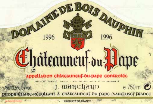 - (赤) フランス: DOMAINE DE BOIS DAUPHIN CHATEAUNEUF-DU-PAPE (1996)