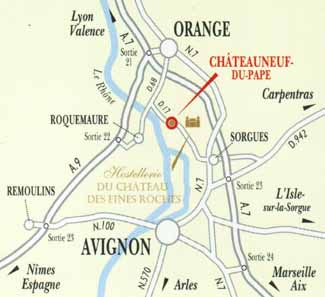 『アヴィニヨンの北18kmにある『法王様の葡萄園』の村は、ワインの名称としてあまりにも有名で、村自体のことは忘れられがちのようだ。この村の噴水の前に、プロヴァンスでも特に名高いラ・メール・ジェルメーヌがある。何しろ戦前から政財界の名士や文化人を多く迎えたこの店を若きシェフ、ピエール・ポメールが引き継いでからは以前にも増して活気づいている。アヴィニヨンの法王庁を遥かに望んで、ローヌ川の流れと、法王様の葡萄畑が一面に見晴らせる眺望は他に類を見ない。料理は、毎日地中海から届くあらゆる海の幸、あるいはプロヴァンスの地鶏や羊、冬には野鳥、猟の獲物も食卓に上る。。。』