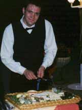 先ず、メニューをチェックします。真っ赤な表紙の見開きのメニューには何やら難しい名前が載っています。よく分かりませんが、一番のお勧めのコース・メニューを頂くことにします。お値段は340フランですから、そんなに高くはありません。まわりのテーブルを見ますと私のような豪華コースを頼んでいるゲストは他にはいらっしゃらないようです。。。