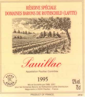 - (赤) フランス: RESERVE SPECIALE DMAINES BARONS DE ROTHSCHILD (LAFITE) PAUILLAC (1995)