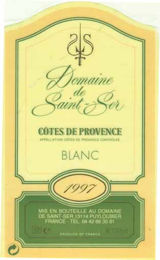 - (白) フランス: DOMAINE DE SAINT-SER COTES DE PROVENCE (1997)