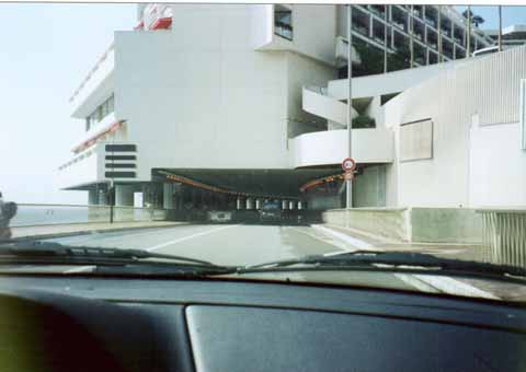 大富豪になった夢すら見ずに熟睡してしまいましたが、目が覚めたら今日も良い天気です。コート・ダジュール最後の宿泊地はニースですが、モナコからは大した距離ではありません。午前中はゆっくり観光しましょう。モナコでの楽しみはF1コースを実際に走ってみることです。別にF1のファンということではありませんが、あのアイルトン・セナやシューマッハと同じ道路を走るというのはやはりゾクゾクします。昨日も一部のコースを走った筈なのですが、F1のレースをよく見ていなかったもので、どこがコースなのか分かりませんでした。でも、海岸沿いのトンネルだけは鮮明に覚えています。ホテルをチェックアウトした後、いよいよF1へ挑戦です。ホテルを出て直ぐに、グニャッとしたカーブを降りますと直ぐに海岸線に出ます。あっ、トンネルが見えてきました。出来るだけゆっくり走って先ず入り口をパチリ。。。