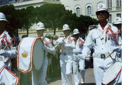 思いもかけずモナコでボルドーワインを手に入れた後、王宮の裏側の階段を上っていきます。12時の衛兵交代式を見ようと思ったのです。快晴で超暑い上に、急な階段を登ったので王宮に着いた途端に頭がクラクラしてきました。それにしても凄い人達です。およそ、世界中から観光客が集まっている感じです。押し分けかき分け、押し戻され、交代式の一部始終は見れませんでしたが、なんとか行列の写真を撮ることができました。それにしても、衛兵さんはなかなかハンサムですね。衛兵さんに限らず、モナコの街中に沢山配置されているおまわりさんもアランドロンも顔負けのハンサム揃いです。そういえば、見物の観光客も女性が多かったですね。