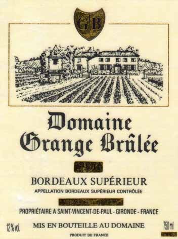 - (赤) フランス: DOMAINE GRANGE BRULEE BORDEAUX SUPERIUR (1996)