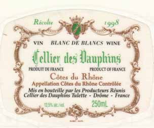 - (白) フランス: CELLIER DES DAUPHINS COTES DU RHONE (1998)