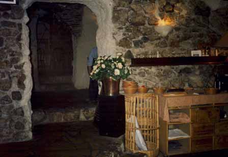 奥のグループ用の部屋です。手前の籠にはパンがぎっしり詰まっています。このパンは普通のフランスパンよりは柔らかく、ちょっとパサバサした感じですが、これがブルーチーズとは最高に合うのです。パンがなくなったら、カッターでチョキチョキと切って籠にとればいいのです。もっとも、そんなにパンを食べる人はいないでしょうけど(私以外は)。。。