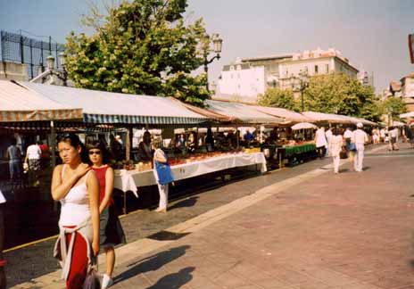 今度は野菜と果物とお花、その他の市が開かれているサレヤ広場に行きましょう。ここも大変な賑わいです。ちょいと果物を買っていきます。歩きながら食べましたが、新鮮で美味しいですね。ここでは、食べ物の他にもハーブとか雑貨も売られています。ニースに住んだら毎朝が楽しみですね。いや、昼も夜も。。。
