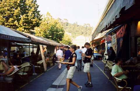 それにしても暑いですね。ビールで喉を潤しましょう。道路沿いのバーに飛び込みます。せっかくならと、通りに面したオープン席に座ります。冷たく冷えたビールを飲みながら椅子にゆったりと腰掛けるとニースの住民になったような気になります。そうだ、ホテルに戻って先ほどのレストランを予約しnight。