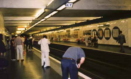 パリの地下鉄は車両こそ新しくないものの、マルセイユと違って駅構内は結構明るい造りになっています。昔は旅行者がパリで地下鉄に乗ることはあまり勧められなかったようですが、今は何ともありません。