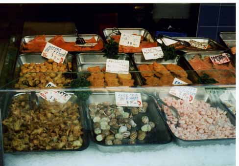 つい、タコのマリネ、イカの詰め物、野菜のパテ、ピクルスなんかを買込んでしまいます。レストランで食べた方がよっぽど安上がりなよう。。。