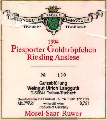 - (白) ドイツ: PIESPORTER GOLDTROPFCHEN RIESLING AUSLESE (1994)