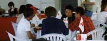 テントは単に休息のためのスペースというだけでなく、お昼にはレストランとしても使われます。豪華なお弁当を出すチームもあれば、自前の炊事道具を持ち込んで温かいお料理を作るチームもあります。わざわざ鈴鹿にあるレストランを呼んで本格的な料理を作らせているチームなどは、じゅうじゅうと音のする熱々の特大ステーキを頂くことができます。このレストランは『ドミニク ドゥーセの店』といって、レーシング関係者には知る人ぞ知る名店なのだそうです。厨房設備は勿論のこと、食材から食器まで全部持ち込みといいますから何とも豪勢ですね!