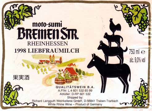 - (白) ドイツ: MOTO-SUMI BREMEN STR. RHEINHESSEN LIEBFRAUMILCH QbA (1998)